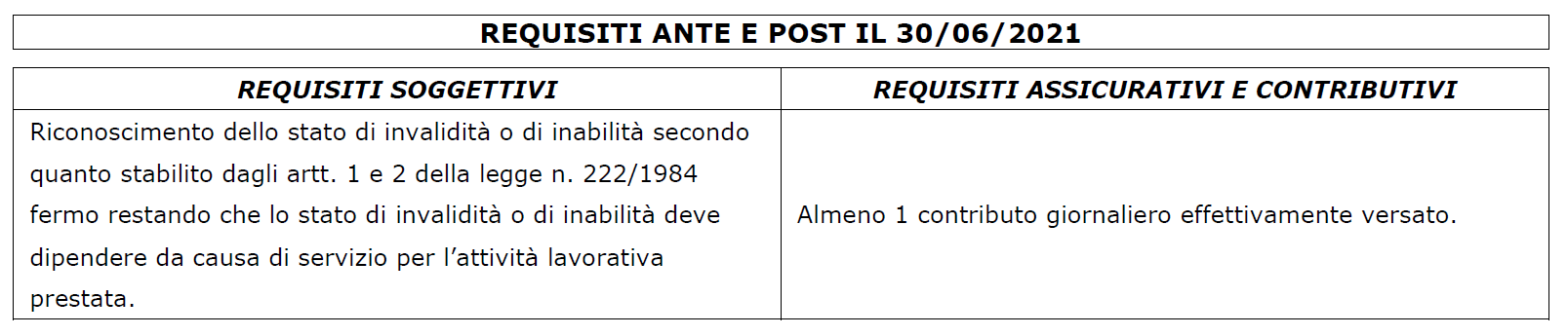 ASSEGNO ORDINARIO DI INVALIDITA’ – PENSIONE DI INABILITA’