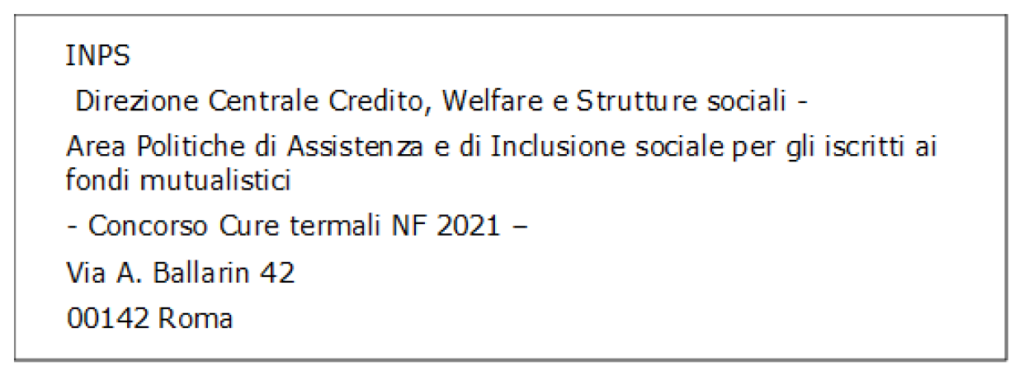 – Area Politiche di Assistenza e di Inclusione sociale per gli iscritti ai fondi mutualistici – Concorso Soggiorni Estivi 2021 via A. Ballarin 42, 00142 Roma.