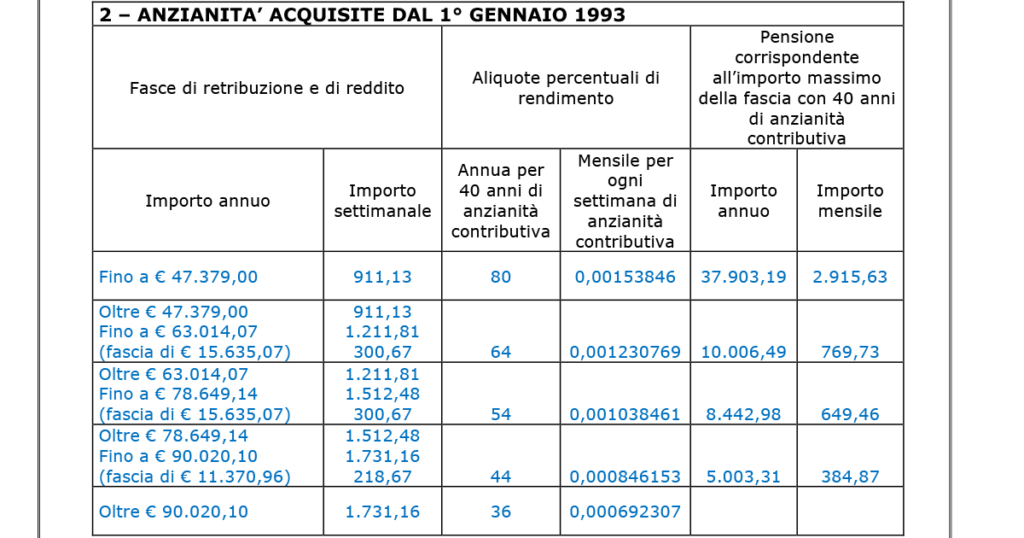 Fasce di retribuzione e reddito pensionabili per l’anno 2021