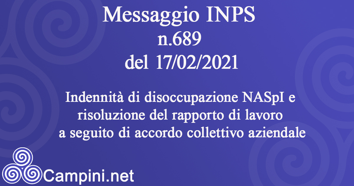 OGGETTO: Indennità di disoccupazione NASpI e risoluzione del rapporto di lavoro a seguito di accordo collettivo aziendale di cui all’articolo 14, comma 3, del decreto-legge n. 104 del 2020, convertito, con modificazioni, dalla legge n. 126 del 2020 e all’articolo 1, comma 311, della legge n. 178 del 2020.