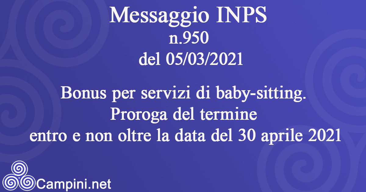OGGETTO: Bonus per servizi di baby-sitting. Proroga del termine per l’appropriazione del bonus e per l’inserimento nel Libretto Famiglia delle prestazioni di lavoro svolte